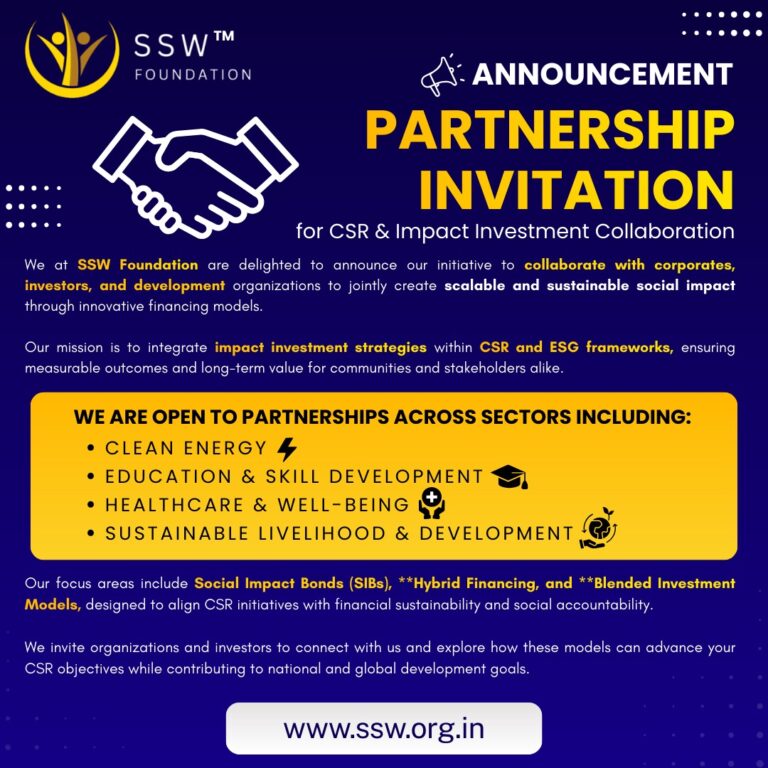 The SSW Foundation is committed to transforming lives in rural, underserved, and tribal areas by providing access to education, healthcare, economic opportunities, and basic infrastructure. The Foundation’s work is grounded in the belief that every community has the potential to thrive through sustainable development that prioritizes community engagement, self-reliance, and social equity. This Sustainability Plan outlines how the Foundation ensures that its initiatives remain impactful and self-sufficient, even beyond initial funding. By focusing on community ownership, capacity building, financial independence, and environmental sustainability, the Foundation works towards creating lasting change and empowering communities to manage their own development.